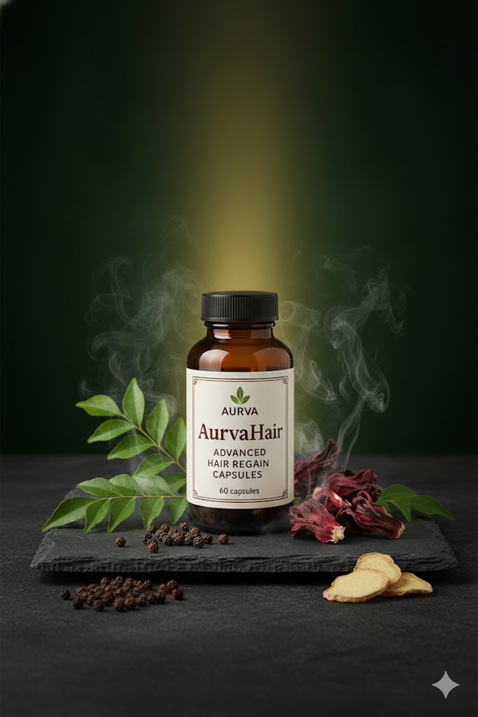 AurvaHair — Advanced Hair Regain Capsules | Aurva – Complete Men's Ayurvedic Wellness Store
