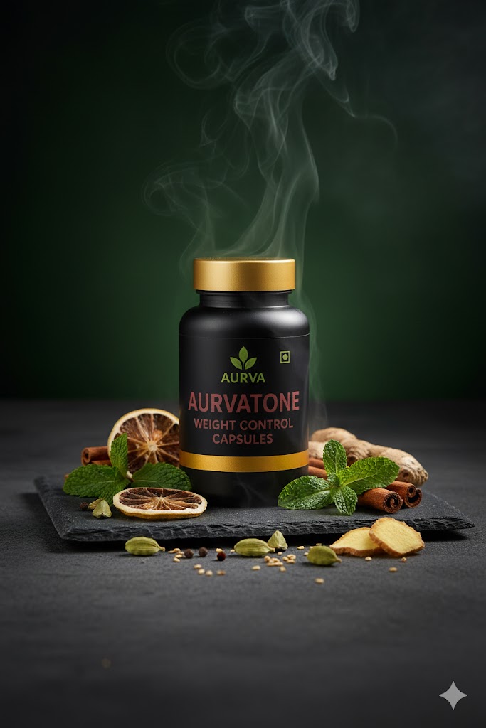 AurvaTone is a refined herbal capsule for those whose weight concerns are tied to stress, slow metabolism, or inconsistent digestion. It leans on adaptogenic and digestive botanicals to create calm energy, better nutrient use, and a more steady appetite—ideal for professionals or urban users who need balanced results without jitters.